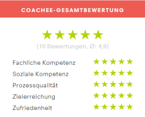 Der Link und das Bild unten führt Sie zu meinem Profil bei Xing Coaches. Dort gibt es eine von Xing qualitäts- und echtheitsüberwachte Bewertungsfunktion und Sie bekommen den O-Ton, wie andere Klienten von unserer Zusammenarbeit profitiert haben.